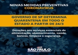 24/03/2020 Medidas preventivas contra o Coronavírus Todo o Estado de São Paulo está sob Quarentena a partir de hoje, 24/03/2020. Medidas vem para conter o avanço do Coronavírus e evitar crescimento do número de suspeitos e de mortes.
